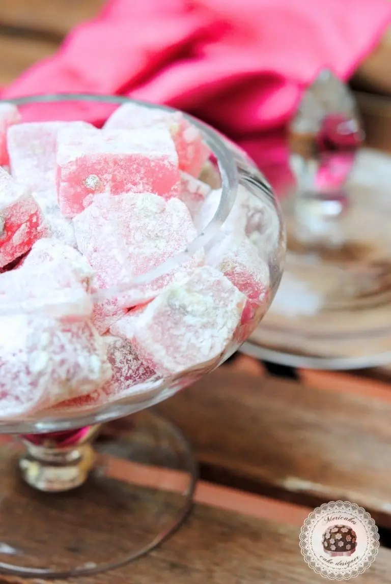 - PreparaciónCalienta en un cazo, a fuego lento, el azúcar con el zumo de limón y 375 ml de agua y remueve con unas varillas constantemente, hasta que el azúcar este totalmente disuelto.Llévalo a ebullición y déjalo hervir hasta que alcance los 120º C (puedes comprobarlo con un termómetro de para caramelo o con el termómetro de pinchar la carne, que es más económico). Retira el cazo del fuego y reserva.Mezcla 120 g de harina de maíz con el cremor tártaro y 250 ml de agua en un cuenco refractario, y remueve hasta que adquiera una consistencia homogénea. Lleva a ebullición el resto del agua en un cazo y añádela a la mezcla del cuenco. Pasa la mezcla a la cacerola y cuécela a fuego medio, sin dejar de batir, hasta que espese y burbujee.Ahora, añade el almíbar caliente poco a poco, sin dejar de remover. Lleva a ebullición y déjalo hervir a fuego lento, removiendo cada 15 min con una cuchara de madera, durante más de una hora. Pasado ese tiempo, verás que la mezcla adquiere un color dorado pálido. Retira del fuego y añade el agua de rosas, el colorante y los pistachos troceados.Vierte la mezcla en un molde cuadrado de 20 cm, untado ligeramente con aceite y déjalo reposar a temperatura ambiente durante un mínimo de 12 horas.Mezcla el azúcar glas con el resto de la harina de maíz en un bol grande. Corta cuadrados de 2,5 cm con un cuchillo engrasado y pásalos por la mezcla de azúcar. Puedes conservarlos en un recipiente hermético, espolvoreados con el resto del azúcar para evitar que se peguen unos a otros.Por supuesto, puedes probar otras combinaciones de sabor, con agua de azahar y almendras, agua de jazmín y nueces, un poco de licor, otros colores…Sweet Life
