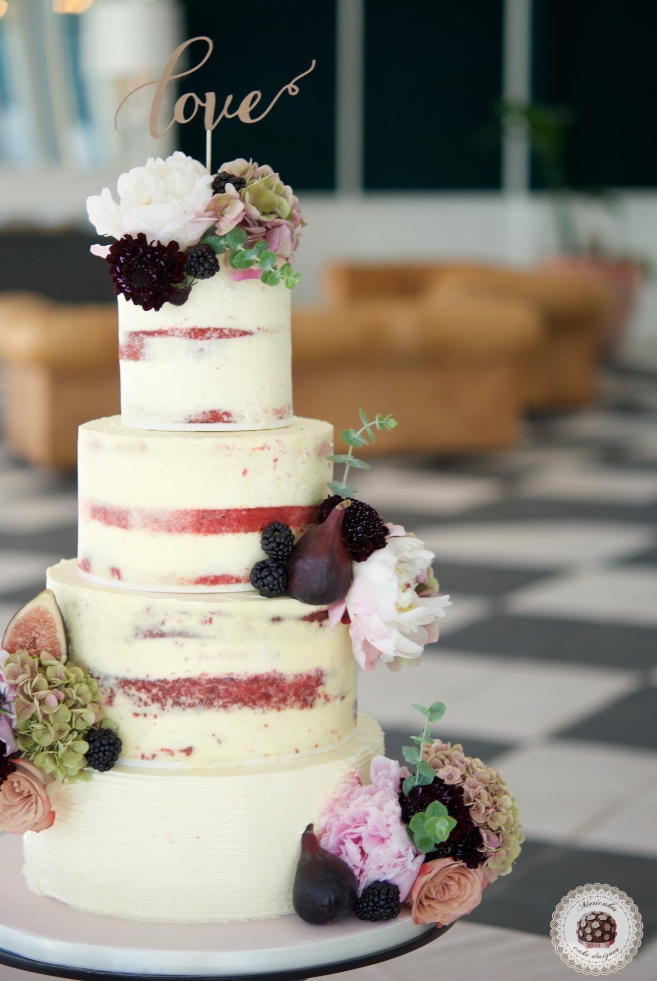 Semi naked cake, wedding cake, tarta de boda, red velvet, mericakes, esther conde catering, castell de sant marsal, flowers cake, peony, wedding cake topper, figs, blackberry, spain wedding 1