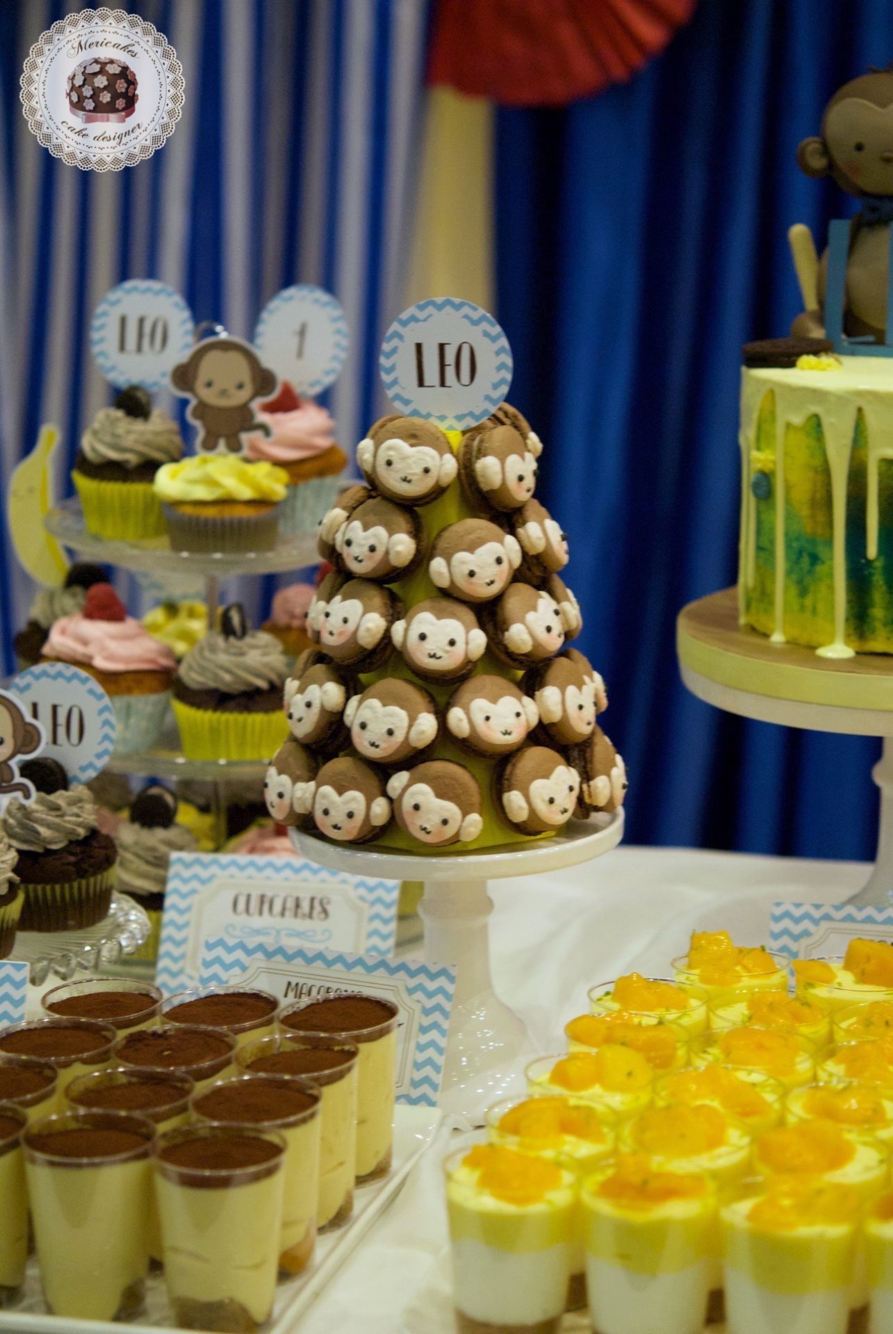 Dessert table, monkey, first birthday, baby birthday, mericakes, barcelona, mesa dulce, monitos, sweet tbale, macarons, drip cake, cookies, cupcakes 6