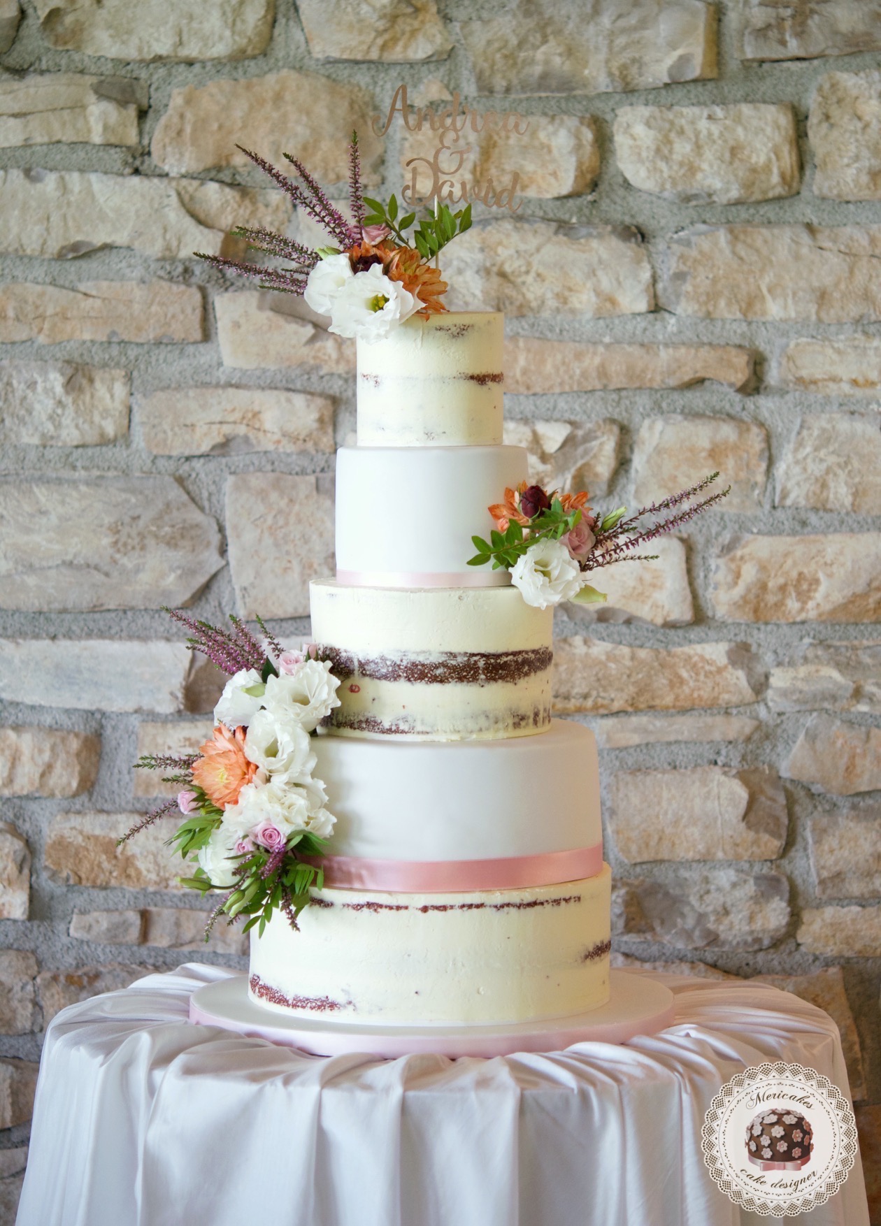 semi naked cake, wedding cake, tarta de boda, fondant, mericakes, fresh flowers, red velvet, mas de sant llei, pastel de boda, spain wedding, romantic wedding, rustic wedding 3