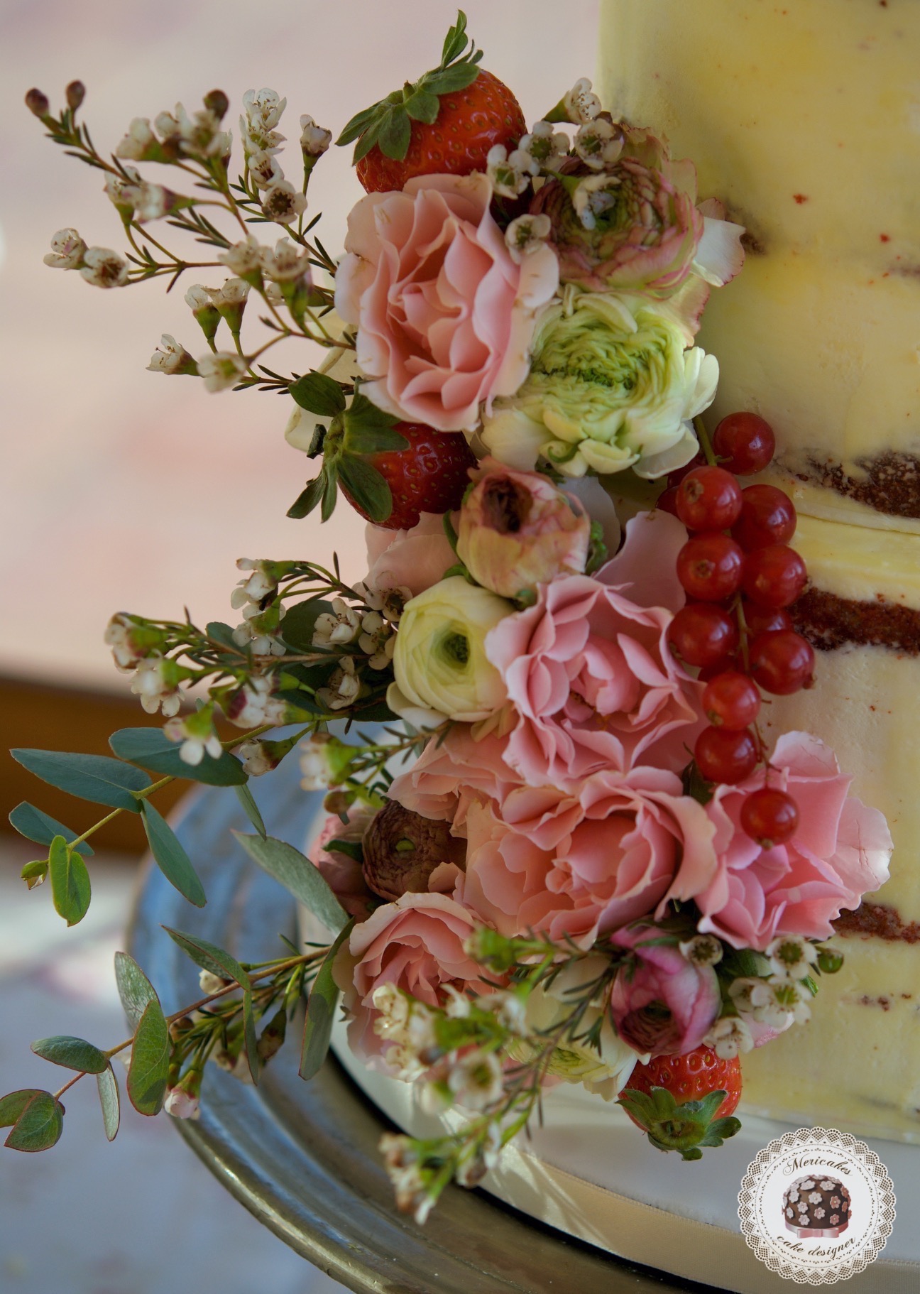 Flowers and Fruit Semi Naked Wedding Cake, tarta de boda, mericakes, strawberry, red velvet, barcelona wedding, fresh flowers 12