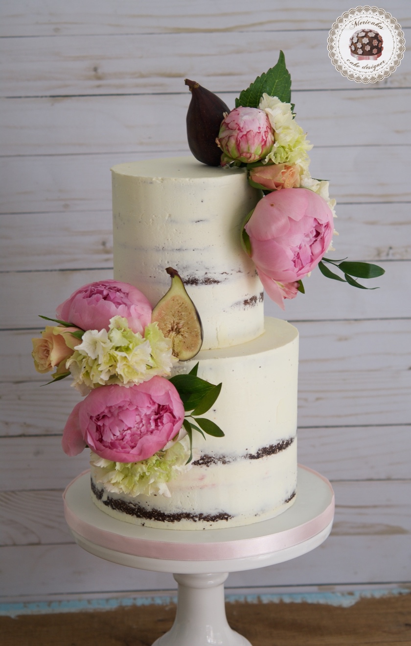 Peony and Figs Cake, Semi naked, mericakes, tartas de boda, wedding cake, tartas decoradas, chocolate, peonia, fresh flowers, hortensias, cream cake 1