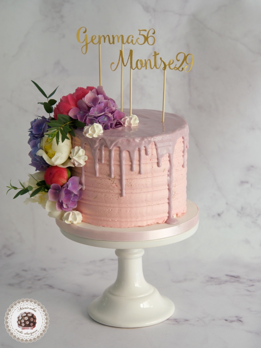 flower drip cake, tarta aniversario, pastel cumpleanos, mericakes, tartas barcelona, drip cake, birthday, red velvet, cake topper