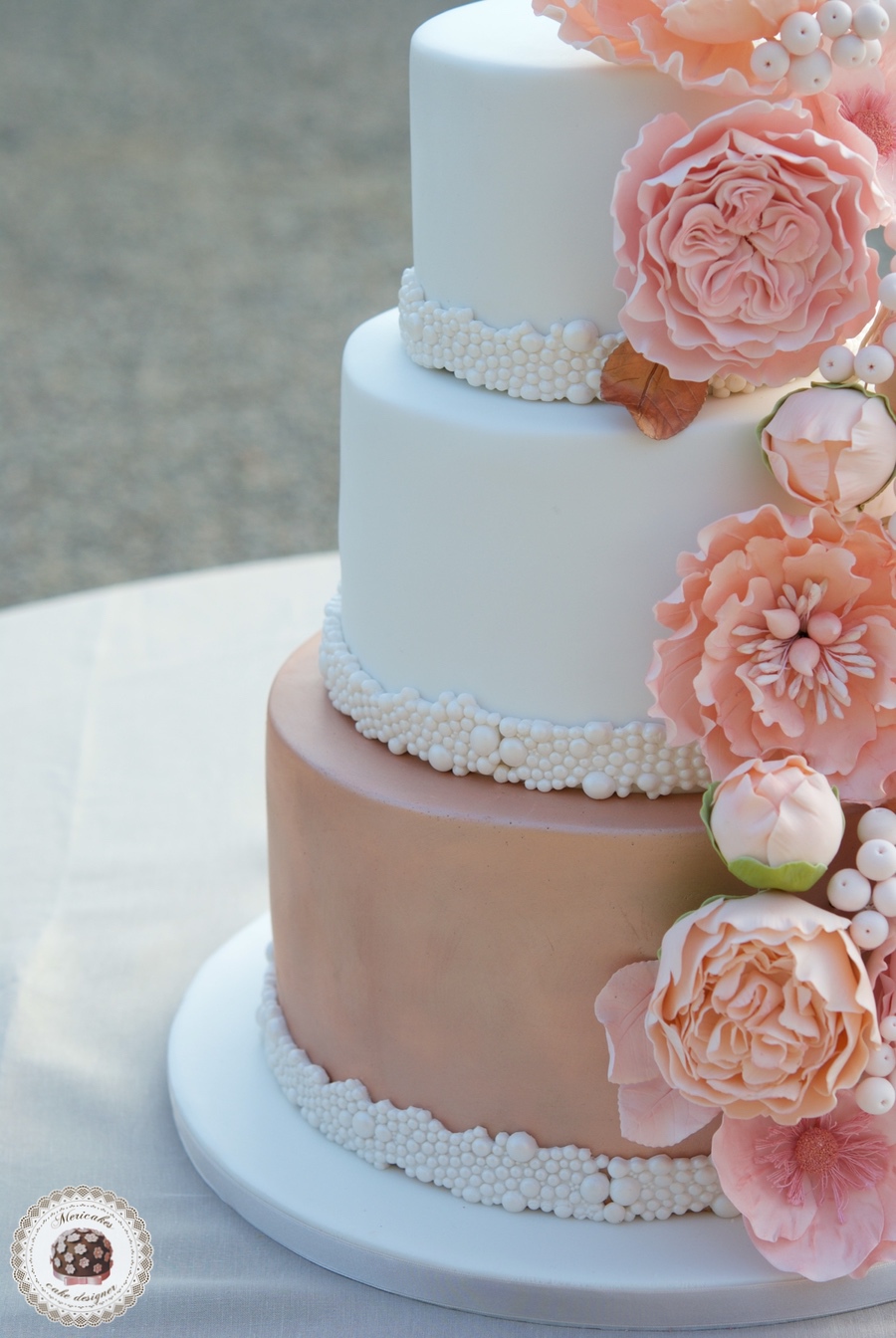 Peach Bouquet Wedding Cake, spain wedding, tarta de boda, mericakes, fondant cake, pink gold, cake topper, sugarflowers 2