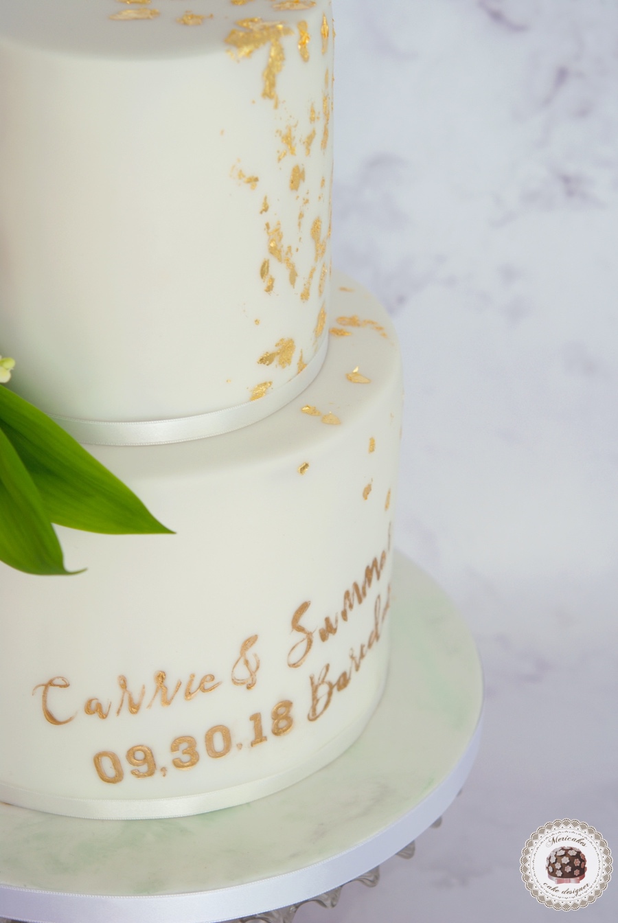 Muguet and gold wedding cake