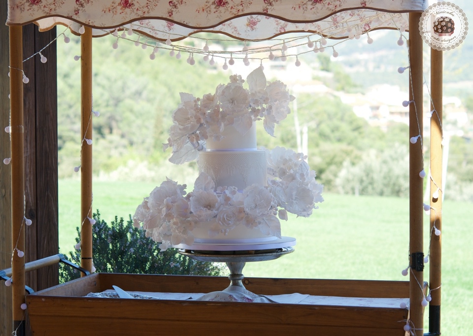 Floating floral cascade Wedding Cake, luxury wedding cake, tartas de boda, flores de azucar, sugar flowers, mericakes, rose and almond cake, champagne cream, barcelona, tarta fondant, sugar lace, 2