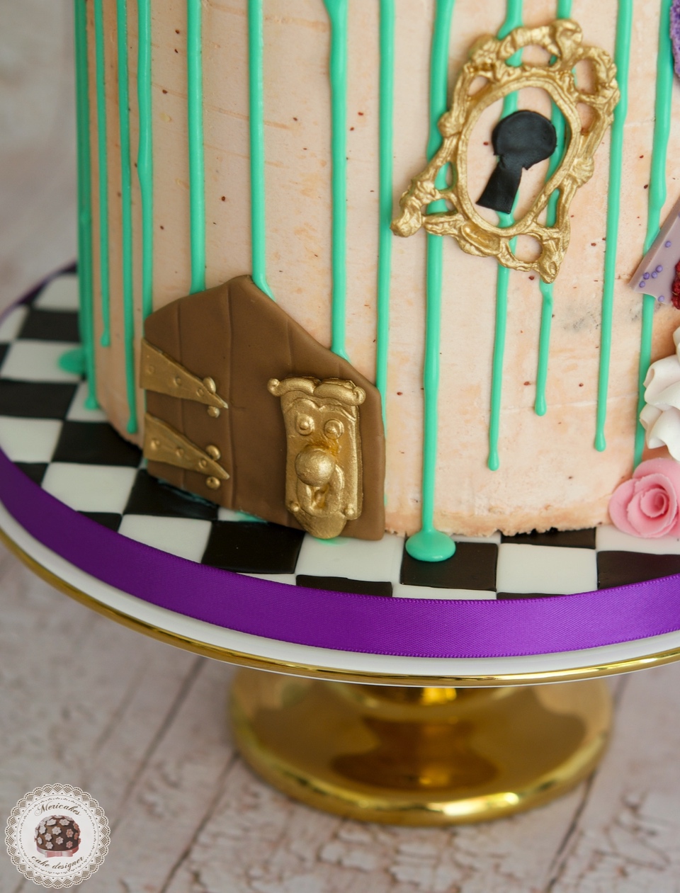 Drip Cake Alice in wonderland, Alicia en el pais de las maravillas, mericakes, chocolate, tartas personalizadas, barcelona, candado, llave, escape room cake, 2