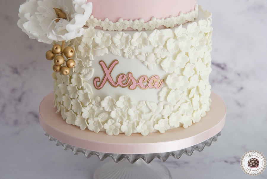 Christening flowers cake, tarta comunion, tarta fondant, tartas personalizadas, chocolate, mericakes, sugar flowers, gold, primera comunion, 4
