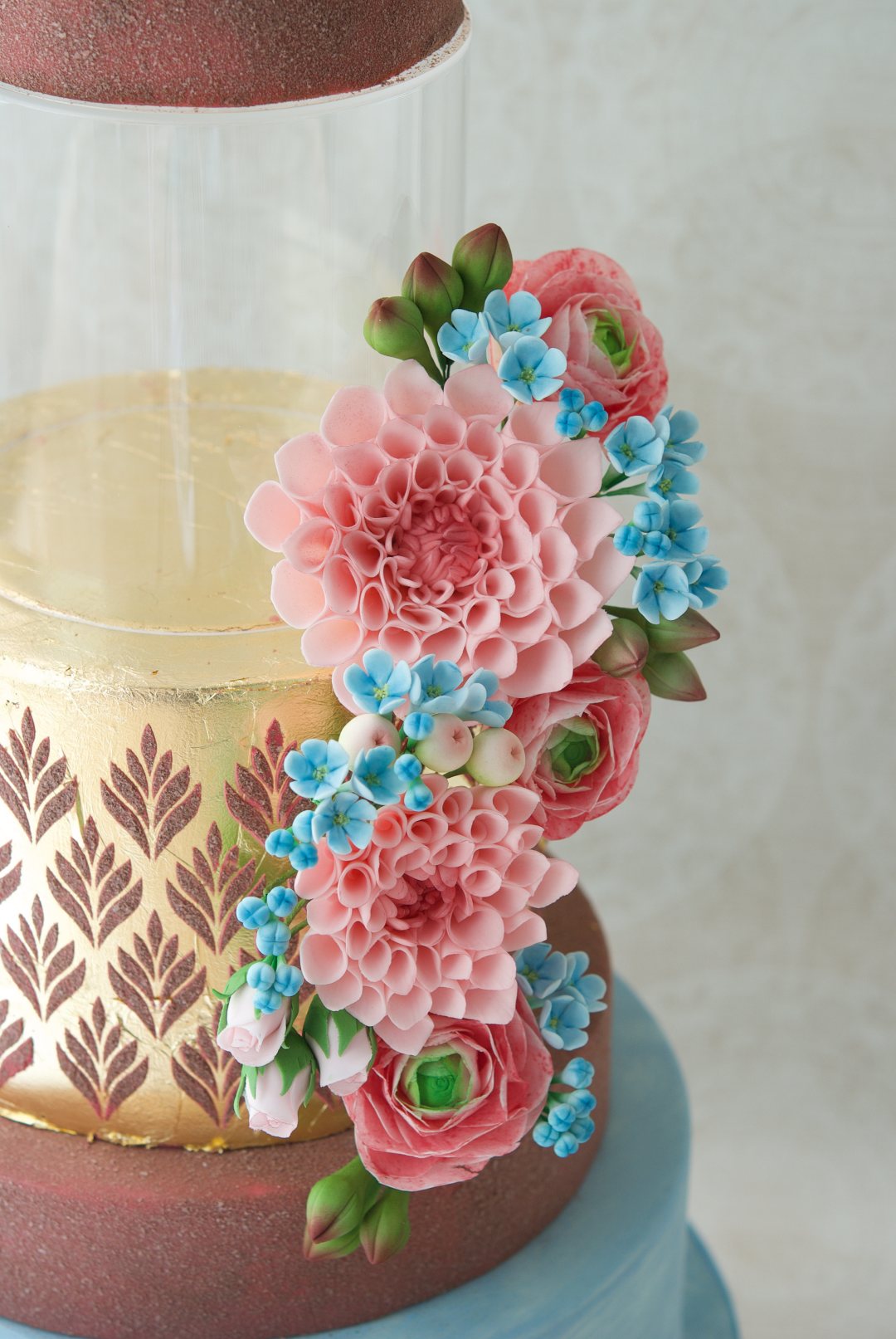 Blooms and velvet blush wedding cake, tarta de boda, mericakes, pastel de boda, fondant cake, sugar flowers, velvet cake, gold leaf cake, luxury wedding cake.11