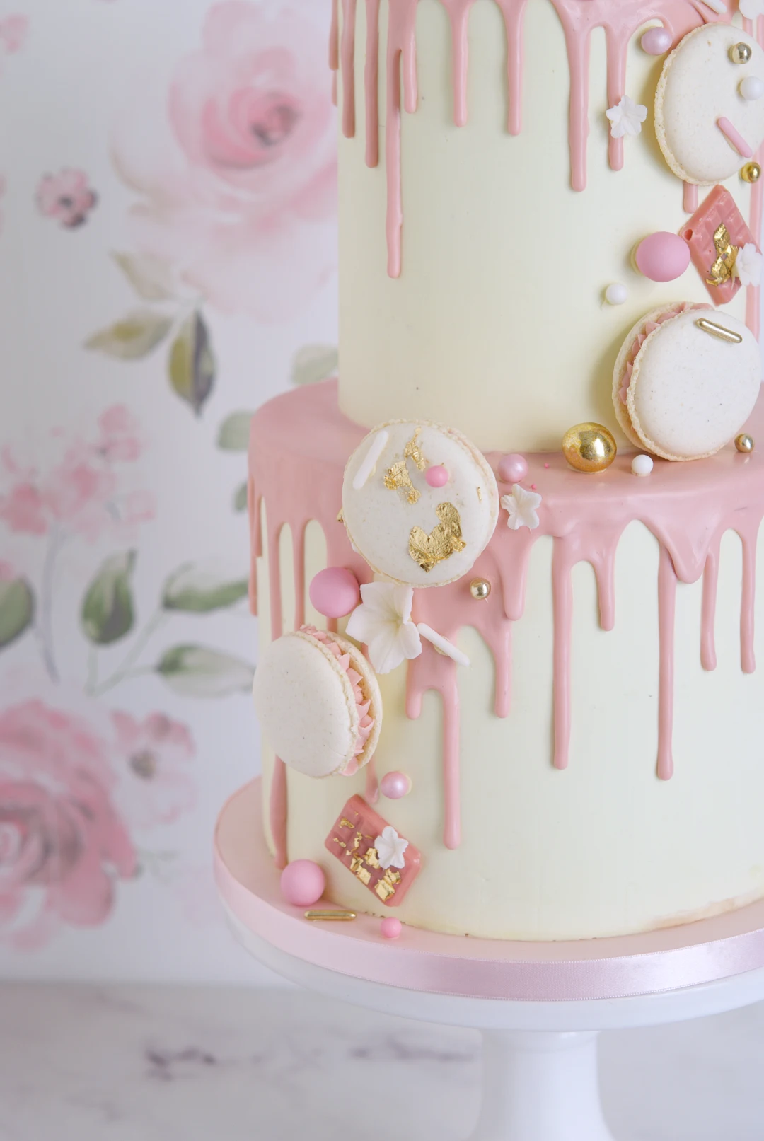 Blush Macaron Drip Cake, tarta comunion, chocolate cake, caramelo salado, mericakes, custom cakes barcelona, tartas personalizadas.9