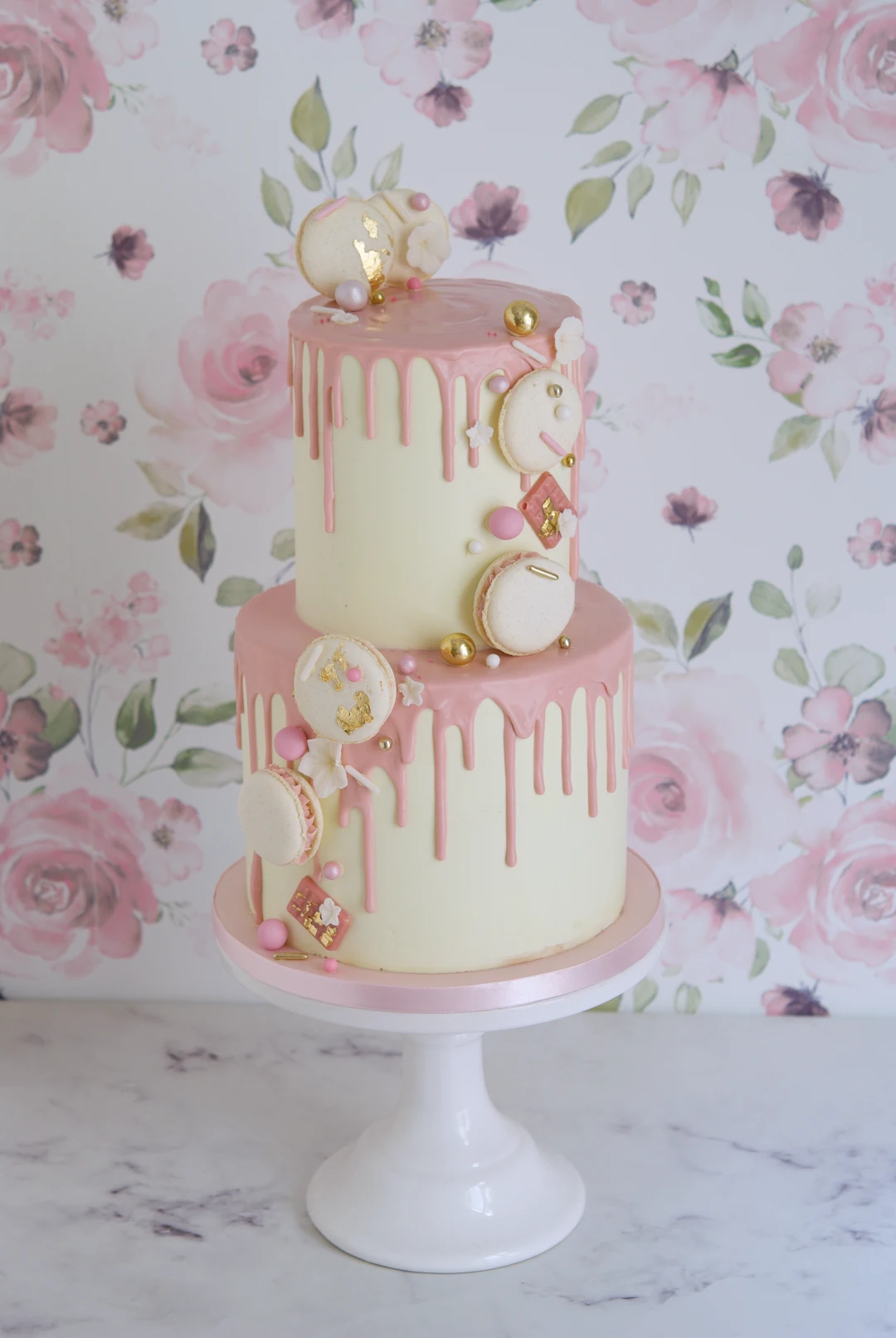 Blush Macaron Drip Cake, tarta comunion, chocolate cake, caramelo salado, mericakes, custom cakes barcelona, tartas personalizadas