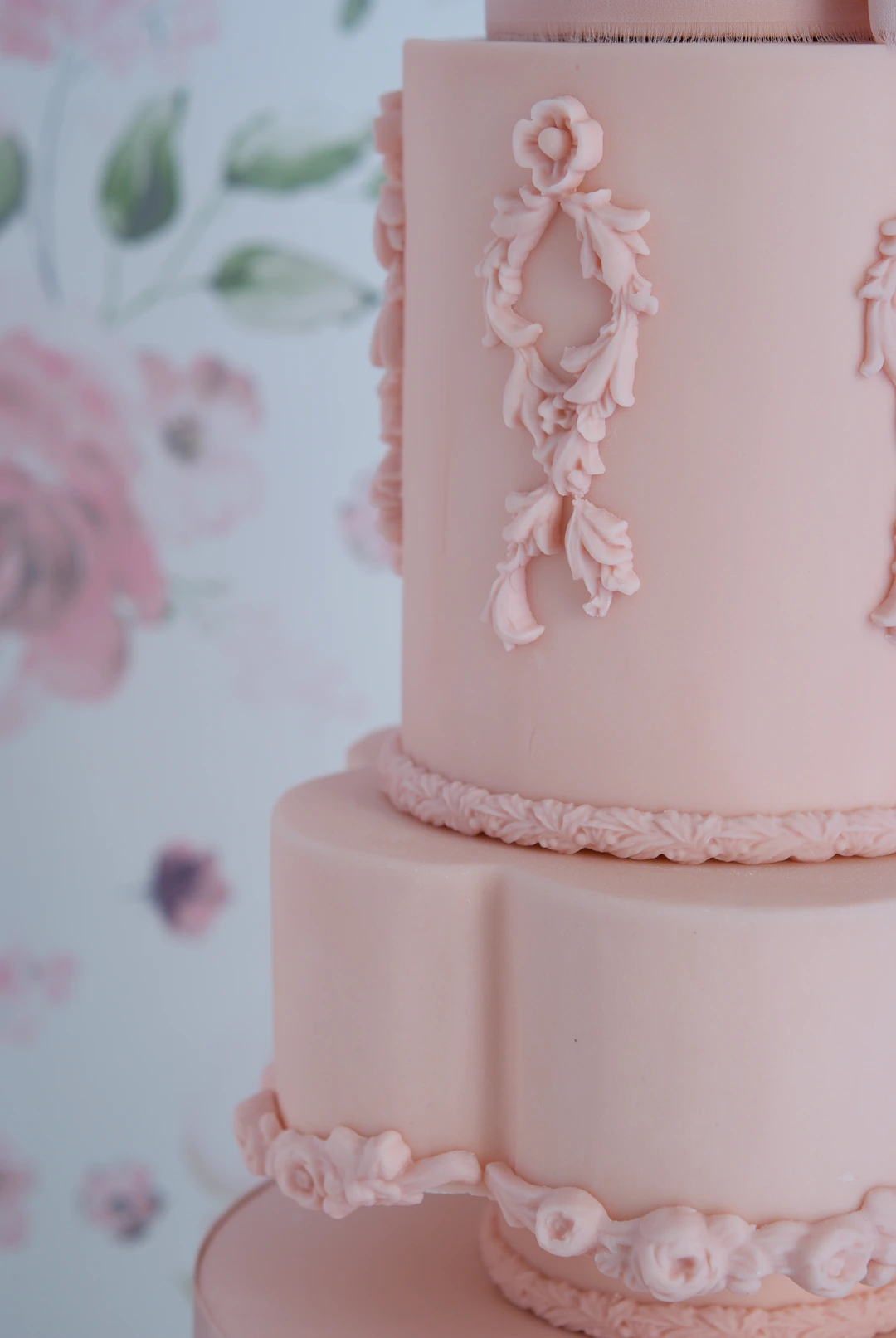 Blush Rococo Wedding Cake, monochrome wedding cake, custom cakes barcelona, mericakes, tarta de boda, baroque wedding cake,11