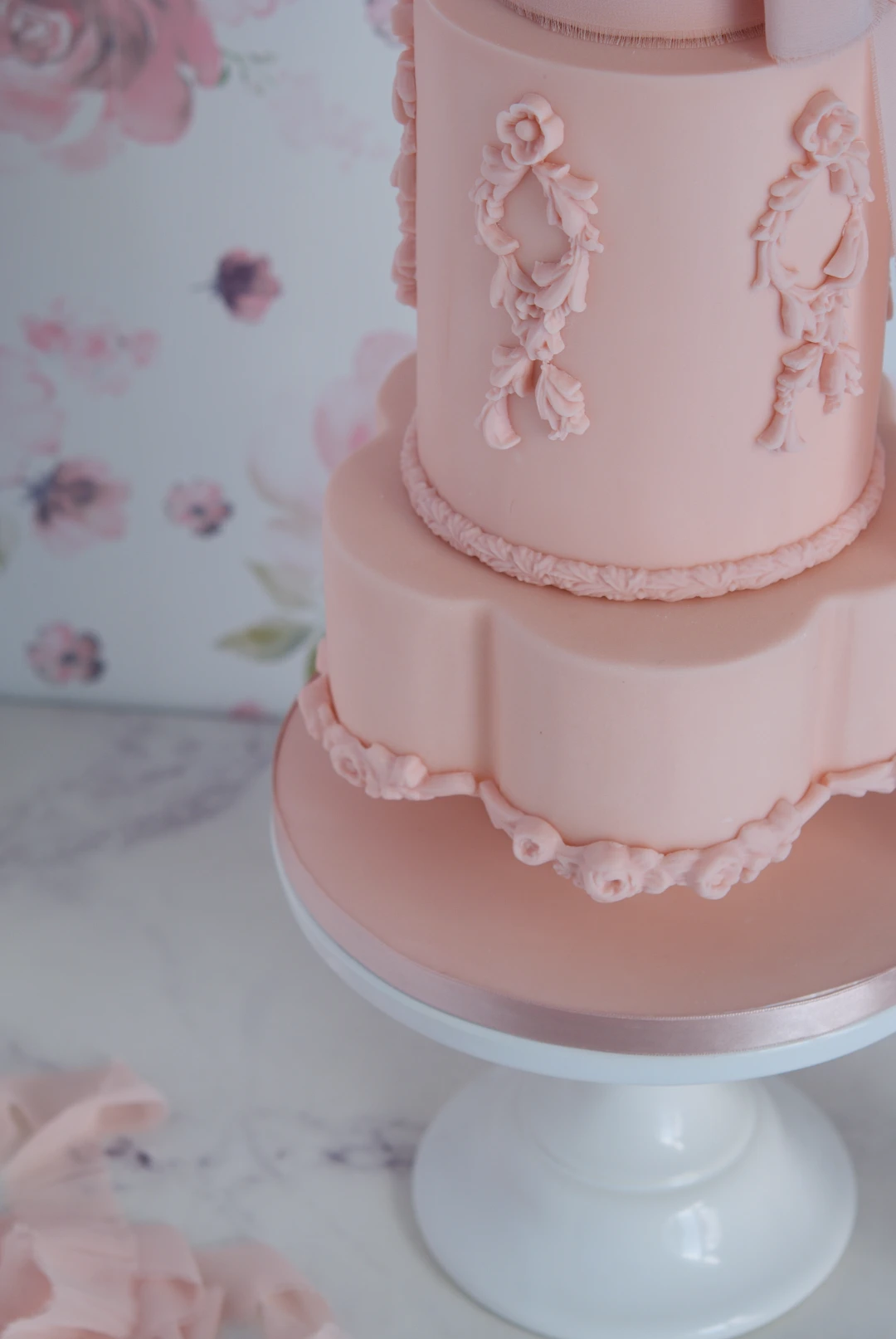 Blush Rococo Wedding Cake, monochrome wedding cake, custom cakes barcelona, mericakes, tarta de boda, baroque wedding cake,4