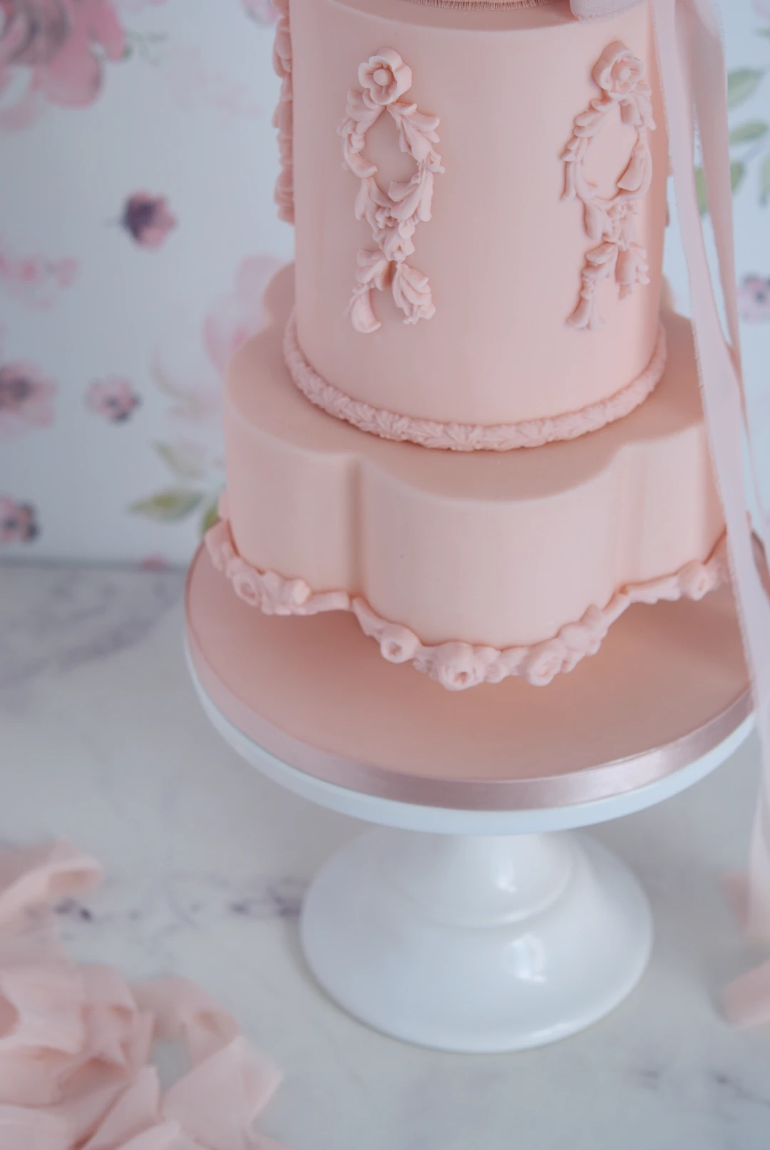 Blush Rococo Wedding Cake, monochrome wedding cake, custom cakes barcelona, mericakes, tarta de boda, baroque wedding cake,5