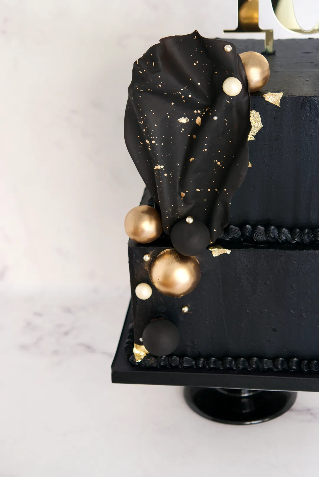 tarta cuadrada, pastel 40 aniversario, tarta negra elegante, mericakes, tartas personalizadas.1