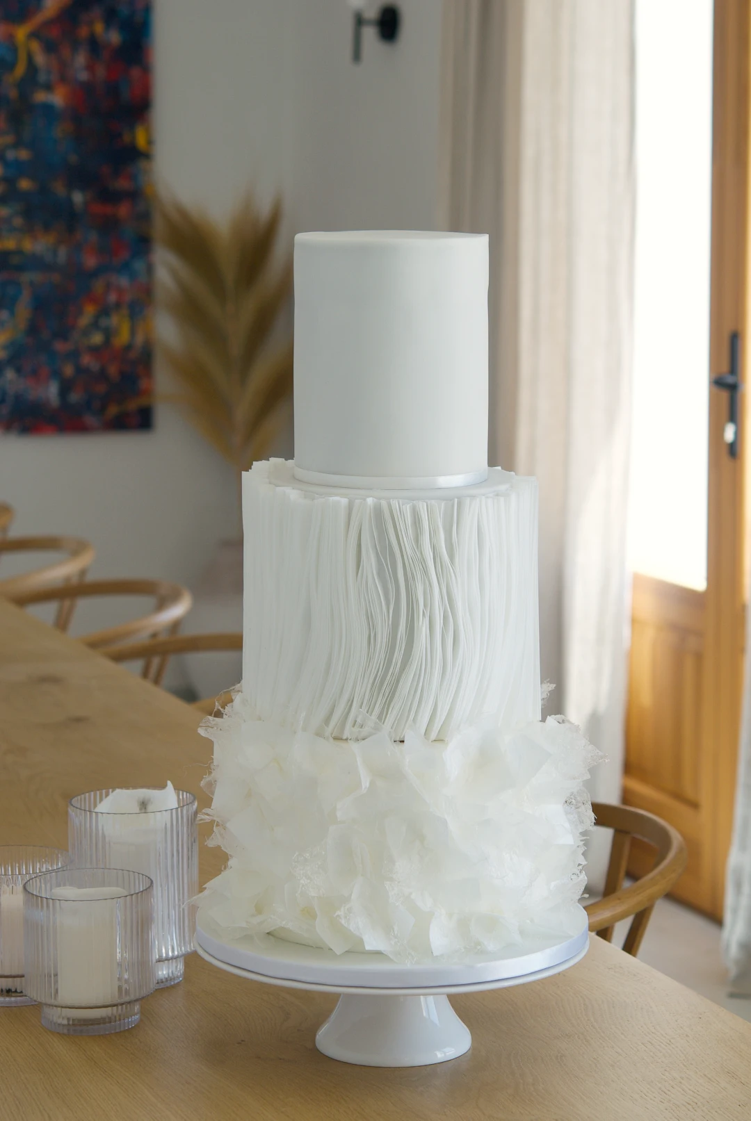 Tarta de boda moderna en papel de oblea