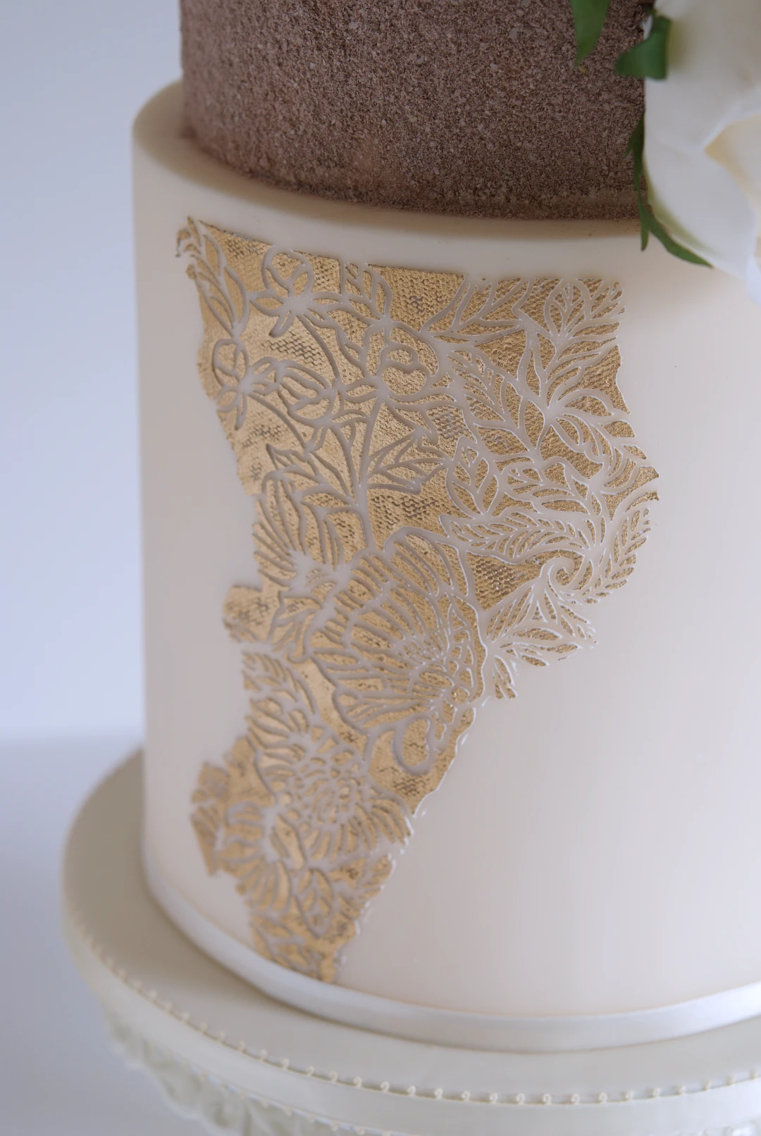 Ivory roses and gold wedding cake, luxury wedding cake, tarta de boda, sugar english roses, rosas inglesas de azucar, velvet cake, mericakes, barcelona cakes.3