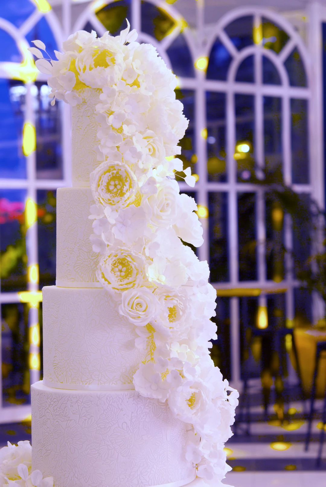 Lace Cascade Wedding Cake, sugar flowers cake, tiramisu cake, mericakes, luxury wedding cakes barcelona,2