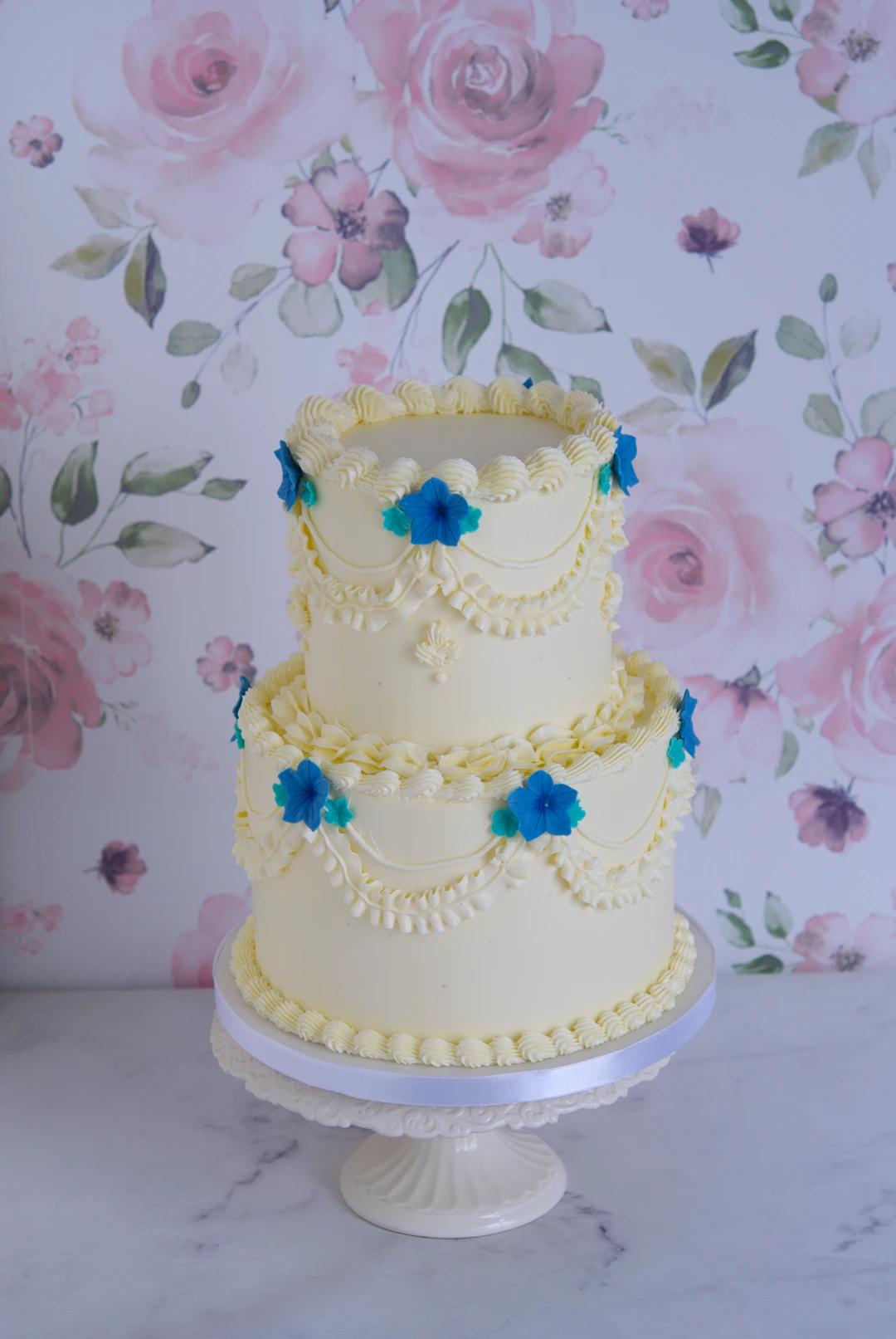 Vintage Blue Floral Cake, wedding cake, mericakes, custom cakes barcelona, mimosa cake, tarta vintage